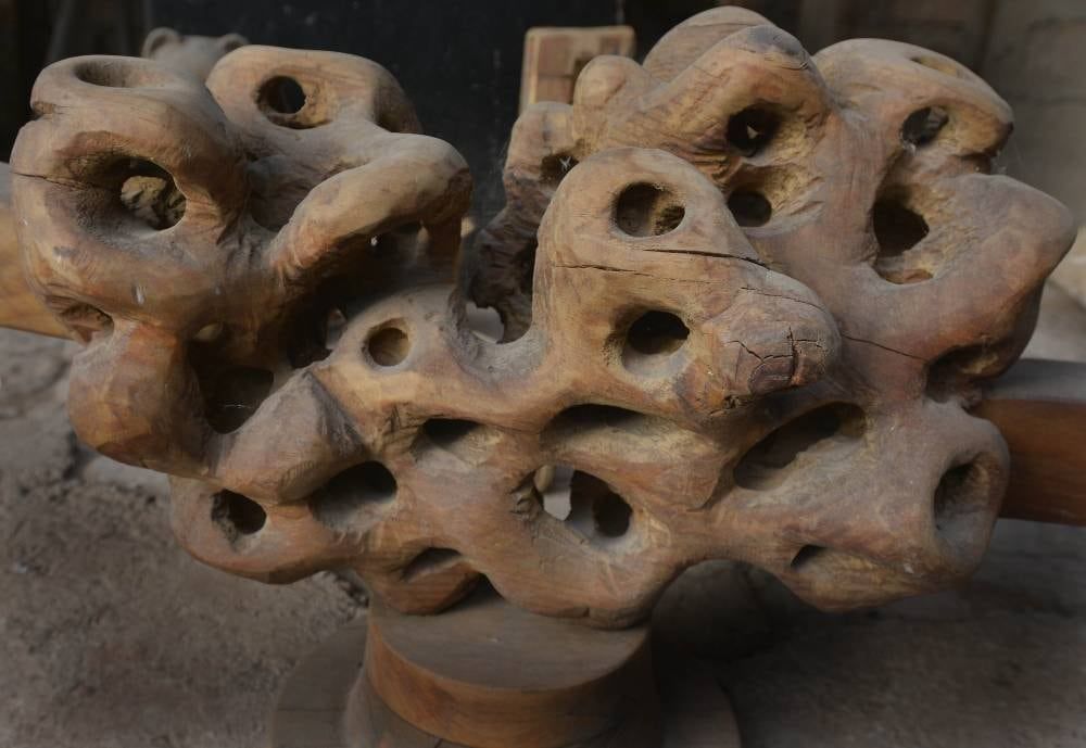 En su extenso taller hay cientos de piezas, esculturas y muebles de distintas épocas. Aunque disfruta de salir a la calle a tallar, cada día suma algo nuevo en su espacio.