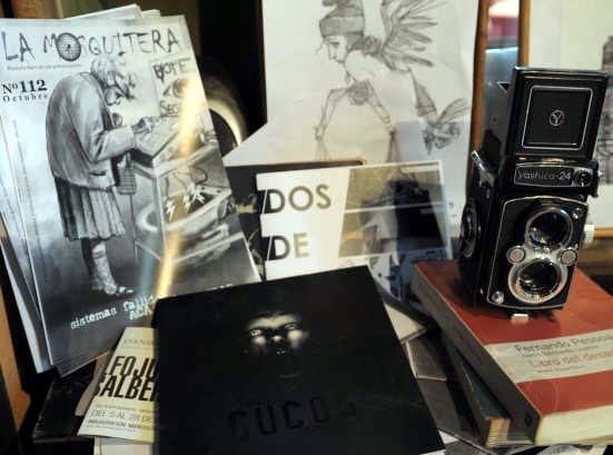 Poner la tapa. Como dibujante, Fernando ha participado en una serie de libros, entre ellos "Cucos y Memoriosos" y cuentos de Abelardo Castillo. Además, realiza las tapas de la revista comunitaria "La Mosquitera". Debajo, asoma un libro de Pessoa, uno de sus autores claves.