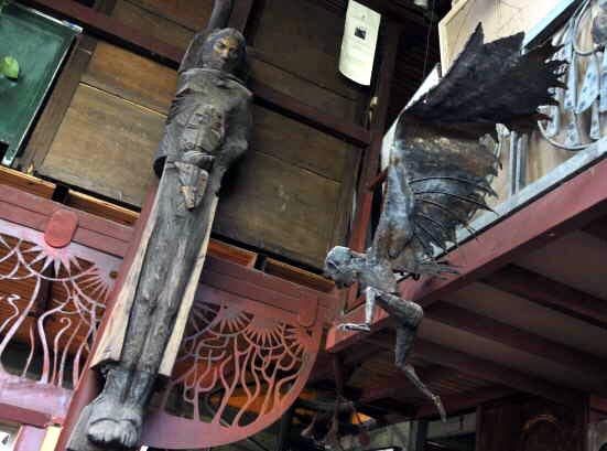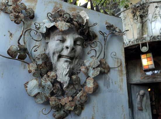 El portal. La entrada ya anuncia el pasaje a otra dimensión. Un dios, Baco, sonríe al visitante. La casa-taller está llena de símbolos. No es casual, pues, que Fernando integre la Cofradia Simbolista como ejercicio estético. "La autorización que nos otorgamos para sostener el juego del arte nos abre al encuentro con un interior que se está formando.