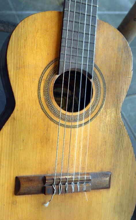 Cuerdas. La antigua guitarra de su padre, ahora forma parte del mundo creativo. Aunque no toca el instrumento, le sirve como elemento de utilería en su universo.