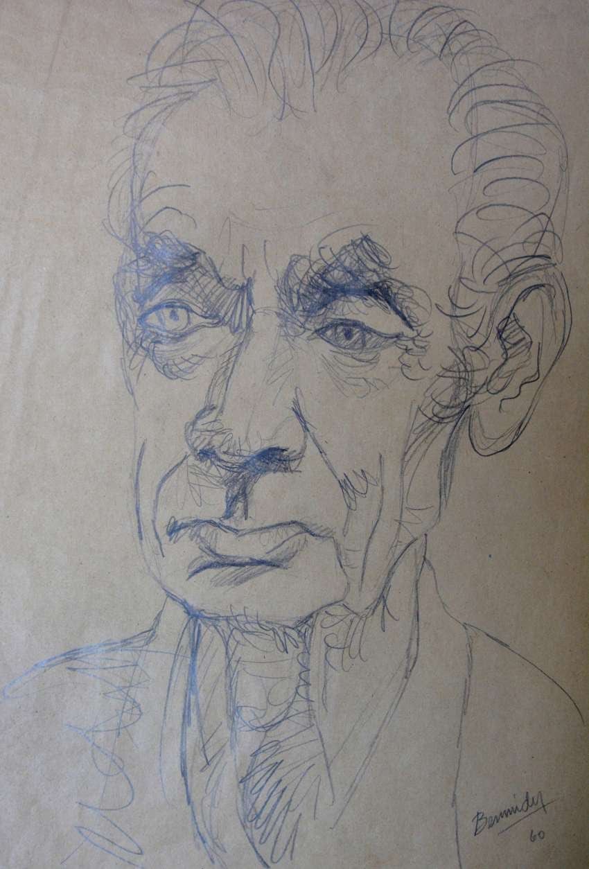 Son pocos los registros fotográficos del artista Juan Scalco. El pintor nacido en Brasil dejó una extensa obra y Bermúdez tuvo la dicha de compartir parte de su camino. El mendocino retrató a su colega, y es una de las reliquias que guarda en su taller.