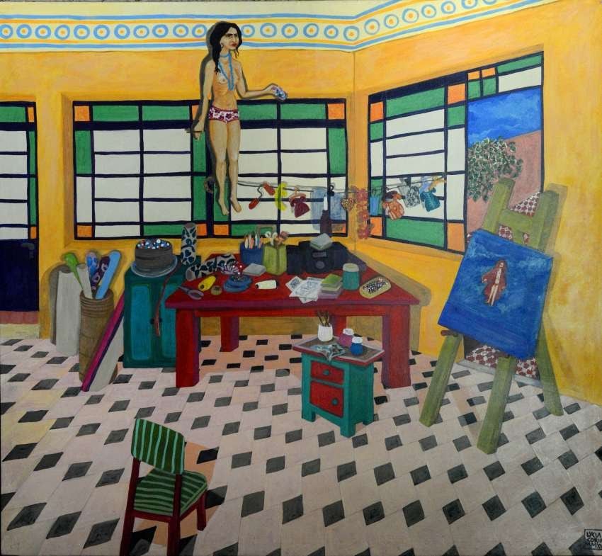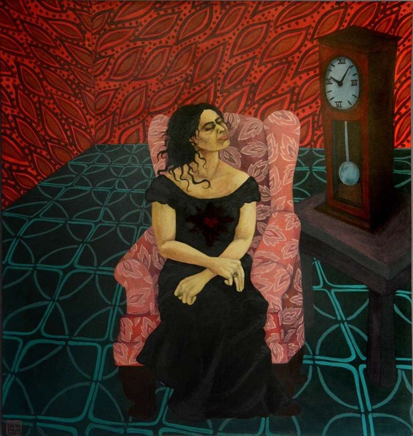 Mujeres solas: sentadas, recostadas, tímidas o levitando. La soledad siempre es el ámbito de sus mujeres (¿autorretratos?). Y pese a verse tranquilas, incluso con los ojos cerrados, sus mujeres tienen mundos internos movilizados. Por esa razón quiebra las líneas de la perspectiva de las habitaciones, dando la sensación de que todo alrededor se mueve.