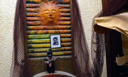 Altar azteca. Vivió casi 15 años fuera de Mendoza, en España y México. Esos viajes le enseñaron, en definitiva, a volver y a dedicarse con más fervor al arte. En esta obra suya, conviven el Subcomandante Marcos, Frida y una antigua tabla de lavar de la que surge un sol que recuerda a los rostros afilados de otra artista mexicana, la gran Remedios Varo.