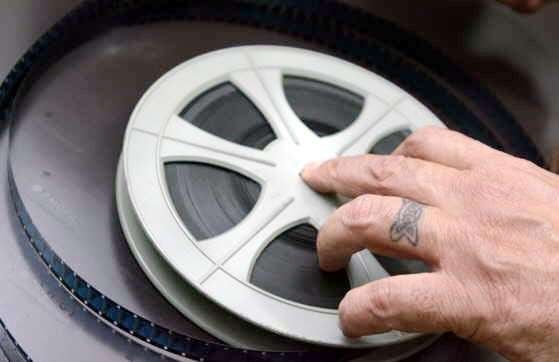 Registros caseros. A lo largo de los años le llegó material periodístico y familiar que da un total de 150 mil pies de cinta de películas. En la foto, una cámara hogareña V8 con un rollo que contiene imágenes de la Vendimia de 1959. "Por lo general me llegan registros de particulares para que los digitalice. Y en ese material encontré imágenes perdidas del Cerro de la Gloria previo a la remodelación en 1940. Es uno de los pocos registros que hay de la época".