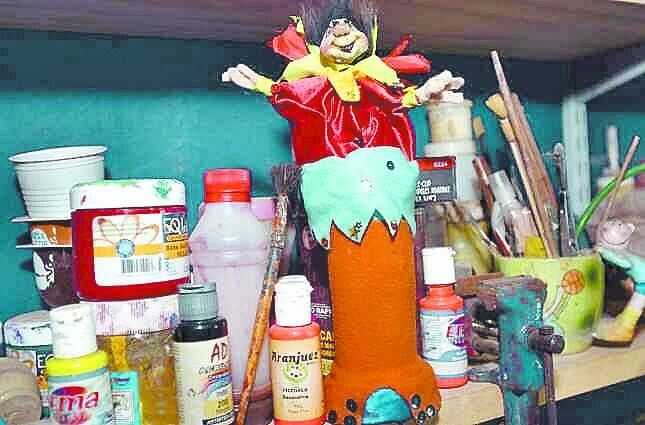Todo vale. En el mundo de los títeres, un retazo de tela puede ser la inspiración para crearlo. Entre sus más de 50 criaturas, con diferentes mecanismos como el títere de boca, de varilla y de guante, también utiliza plástico y cartón. En un rincón del taller, la mirada penetrante de sus títeres Recicletes.