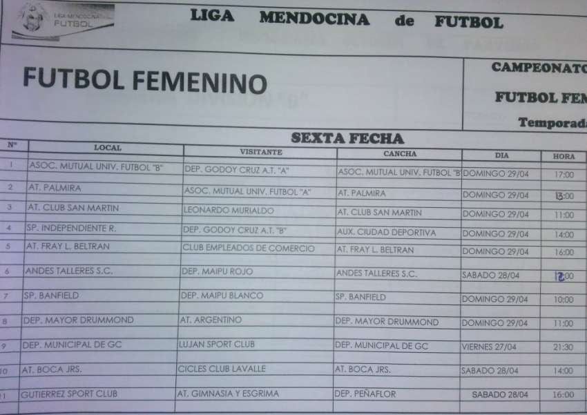 Comenzó un fin de semana extra largo por la víspera del día del trabajador (1 de mayo) y la Liga Mendocina de Fútbol aprovechó para programar la fecha 6 junto a la 2 (postergada) y ponerse al día con el fútbol femenino.
