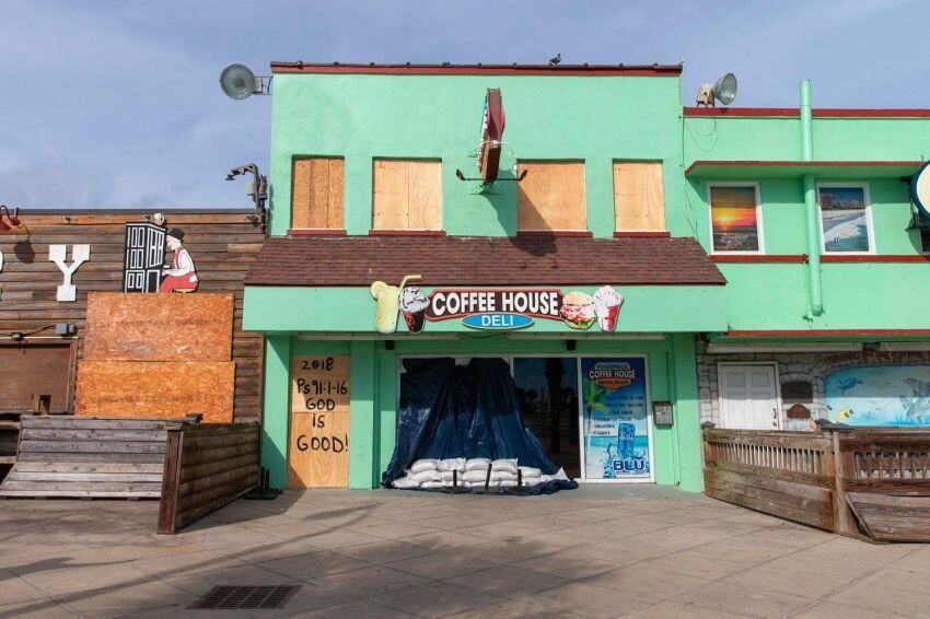 Una cafetería cerrada en Myrtle Beach, Carolina del Sur. Los habitantes de la costa evacuaron ante la inminente llegada del huracán. Foto: AFP