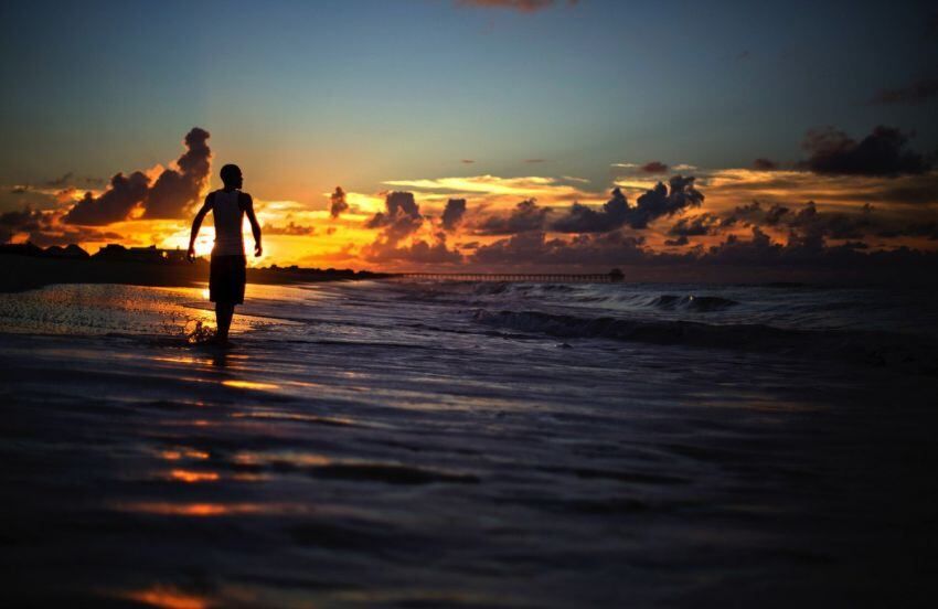 Andrew Lingle camina por la playa al amanecer mientras el huracán Florence se acerca a la costa este en Atlantic Beach, N.C. Foto: AP