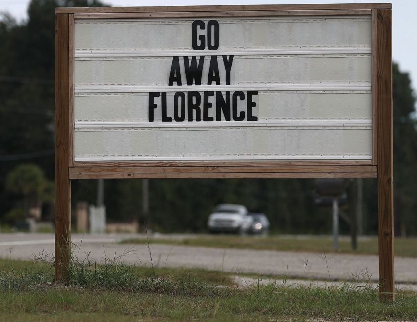 Un cartel dice "Vete Florencia" antes de la llegada del huracán. Foto: AFP