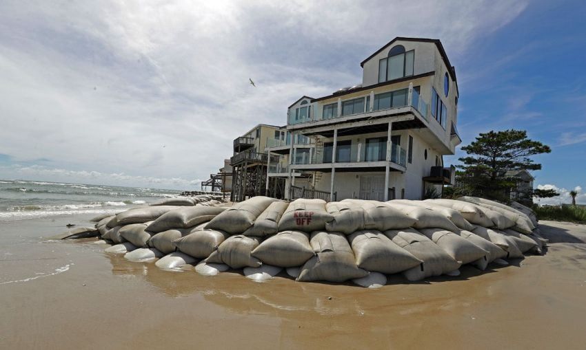 Bolsas de arena rodean las casas en North Topsail Beach. Foto: AP