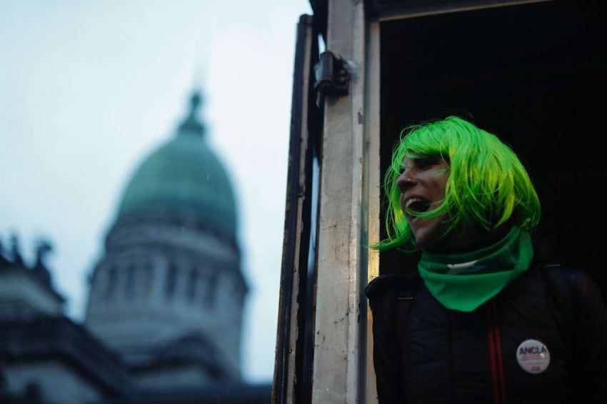 Una manifestación en apoyo de la despenalización del aborto grita fuera del Congreso en Buenos Aires. Foto AP