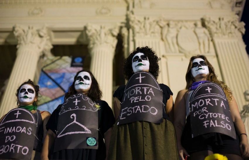 Manisfestantes en contra de la despenalización del aborto se reúnen frente al Congreso. Foto AP