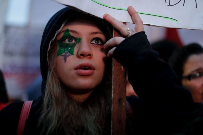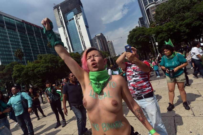 Una activista sostiene su brazo durante una manifestación a favor de la aprobación de un proyecto de ley para legalizar el aborto en Argentina en la Ciudad de México. Foto AFP