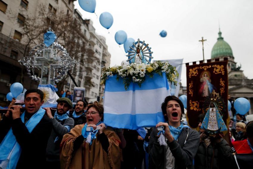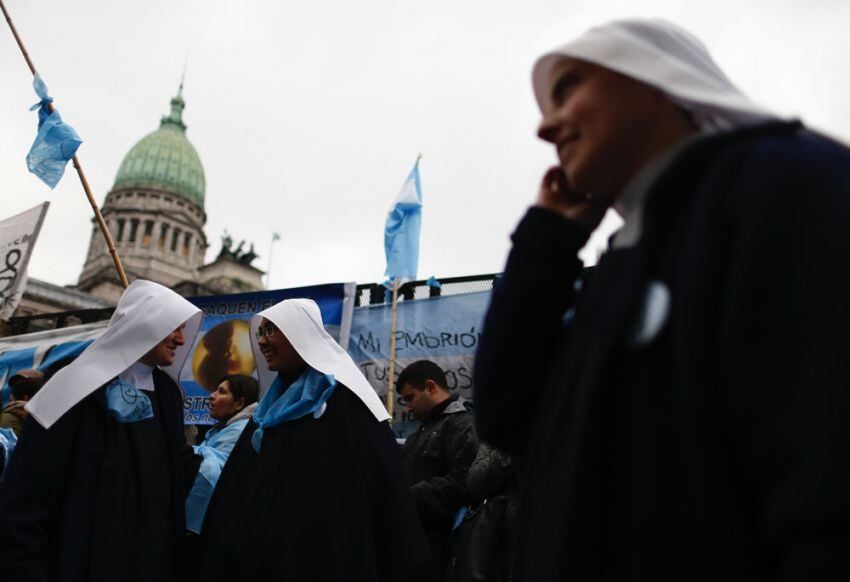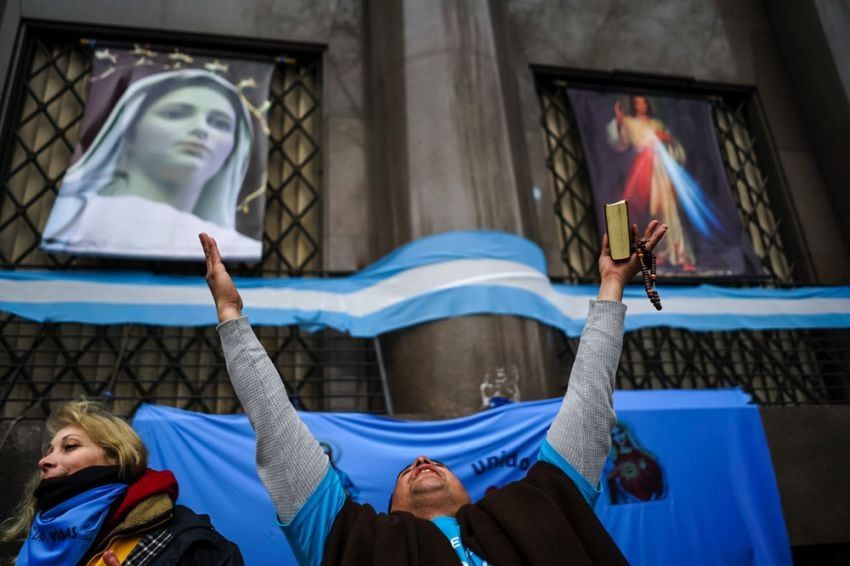 Un manifestante contra la despenalización del aborto reza frente al Congreso. Foto AP