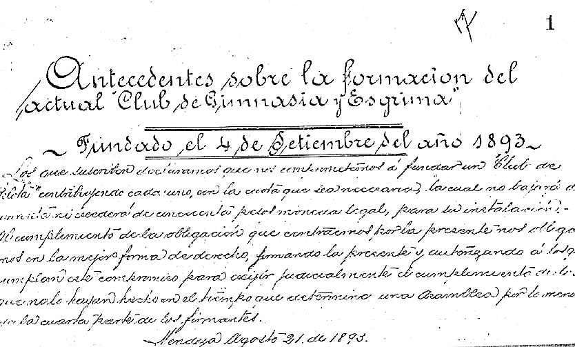 El Club de Gimnasia y Esgrima es una de las instituciones más antiguas de la provincia. Revisando los archivos uno puede asegurar que tuvo sus inicios en el año 1890, según el acta de fecha 15 de noviembre.