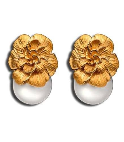 Los aros pendientes Gardenia de Carrera y Carrera con sus pétalos estriados en oro amarillo representa esta flor símbolo de la gracia femenina.