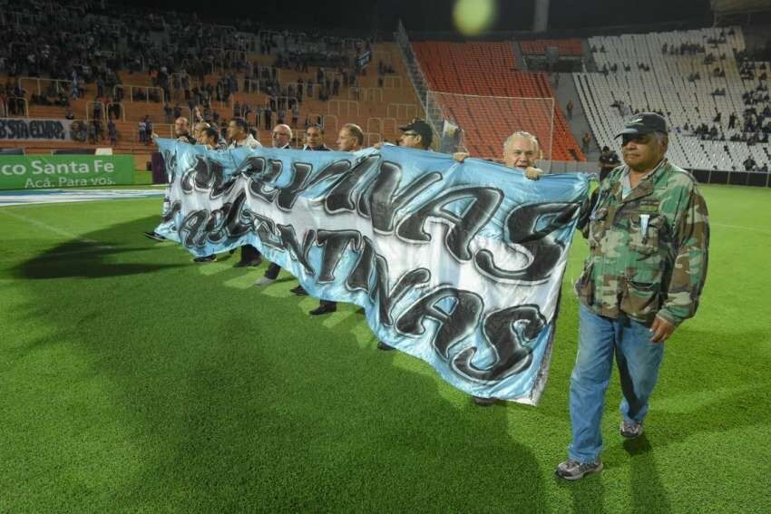 Un grupo de ex combatientes de Malvinas fueron ovacionados en la previa al partido ante Colón, en conmemoración al 2 de abril.