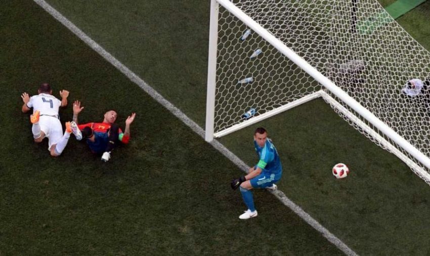 Del rebote, llegó el disparo de Diego Laxalt, el desvío en Denis Cheryshev y el 2 a 0 para Uruguay. Era a su vez el tanto que igualaba el récord establecido de goles en contra en un mismo Mundial: seis en Francia 1998.