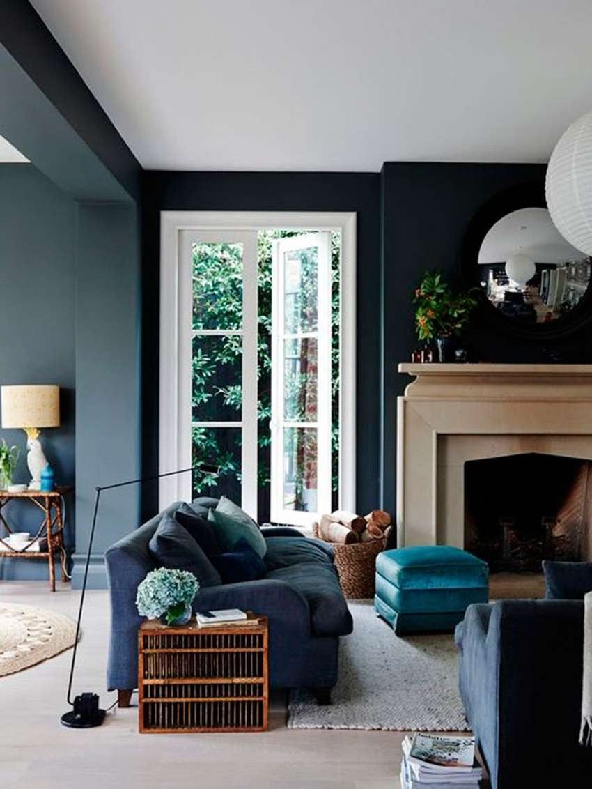 No hay que tener miedo de los colores oscuros, el azul marino puede quedar muy bien en el salón.