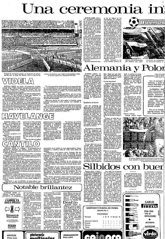 Con el partido entre Alemania y Polonia, la inauguración tuvo lugar el 1 de junio de 1978 en el estadio de River con una duración 75 minutos.