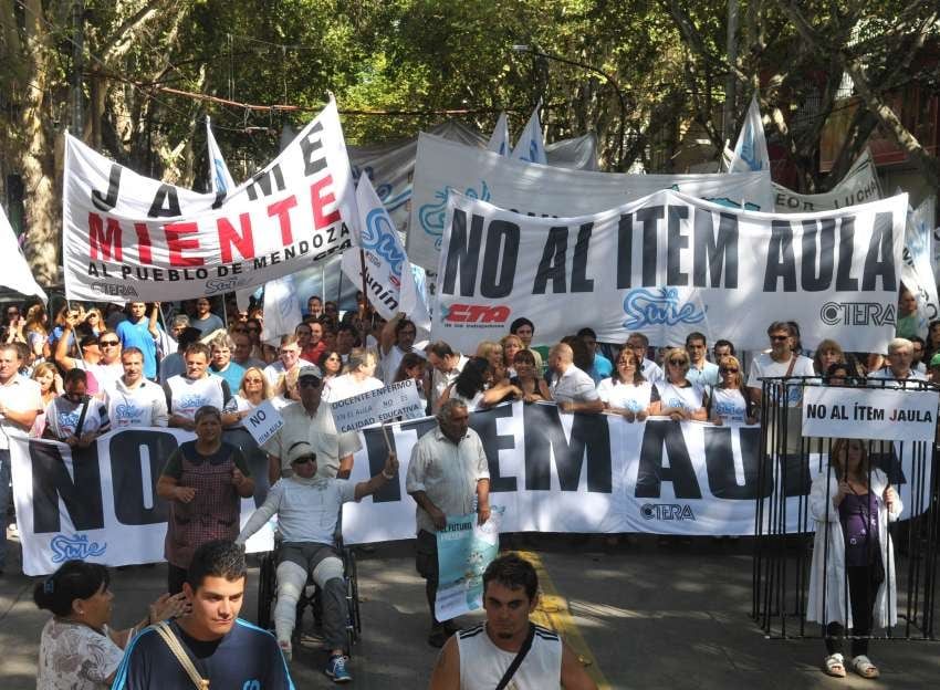 En 2016. El nuevo Gobierno de Alfredo Cornejo decretó una suba del 32%, incluyendo el ítem aula, tras fracasar la paritaria. Las clases empezaron un día tarde por un paro con alta adhesión.