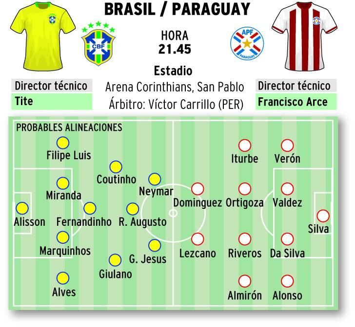 A Rusia 2018 irán los cuatro primeros, mientras que el quinto jugará un repechaje. Dependiendo de los resultados, Paraguay podría quedar a seis puntos del quinto lugar faltando cuatro fechas por jugarse si cae ante un Brasil que se reencontró con su fútbol tras la llegada del DT Tite y que encabeza cómodamente la tabla con 30 puntos.