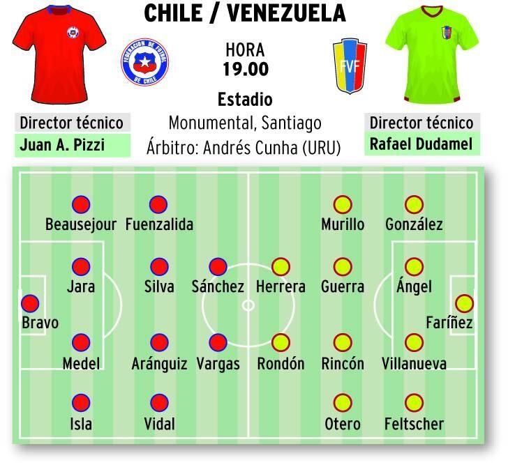 Chile cayó al sexto lugar tras perder con Argentina, pero podría escalar posiciones si le gana de local al colero Venezuela. Los chilenos recuperan a su caudillo Arturo Vidal, ausente ante Argentina por suspensión. Uruguay conservará el segundo lugar si derrota a Perú en Lima.