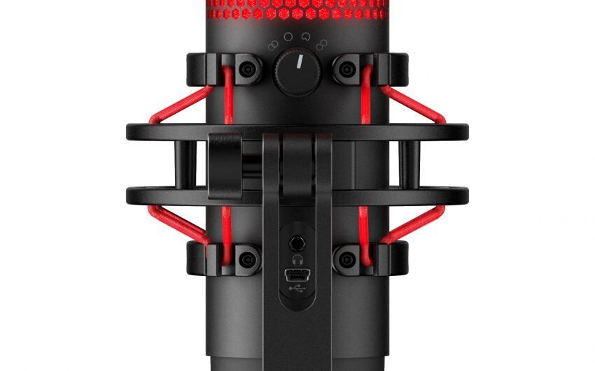 para transmisión en vivo y grabación de audio. HyperX QuadCast cuenta con su propia montura anti-vibración y ofrece cuatro patrones polares seleccionables, ajuste de control, filtro interno contra chasquidos y función “tocar para silenciar”, que apaga la luz LED roja para indicar que el micrófono se encuentra en modo mudo.