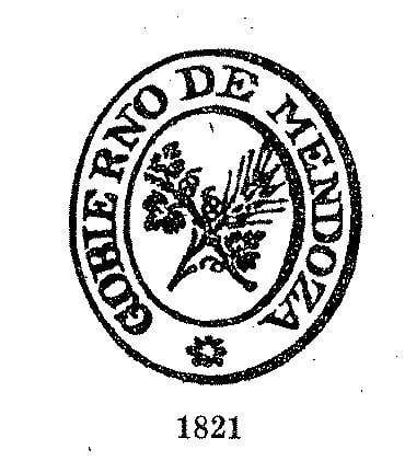 El primer emblema de nuestra provincia fue realizado en 1821, un año después de la separación de las Provincias de Cuyo y la autonomía de la misma. Era ovalado y sobre un campo de plata se distinguía un pámpano atravesado por una espiga de trigo y en una de sus partes la leyenda “Gobierno de Mendoza”.