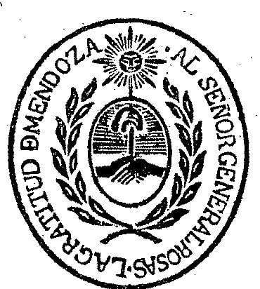 Según se cree, fue allí donde apareció por primera vez el de Mendoza y consistía en el mismo emblema nacional pero ofreciendo por primera vez un distintivo peculiar: dos cuernos de la abundancia con las bocas hacia arriba.