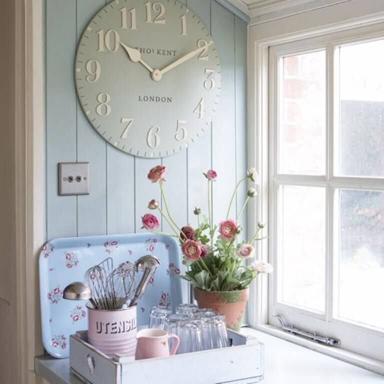 Relojes casi integrados con el fondo de la pared, grandes pero discretos y funcionales en baños y cocinas.
