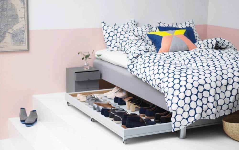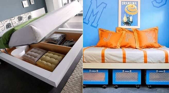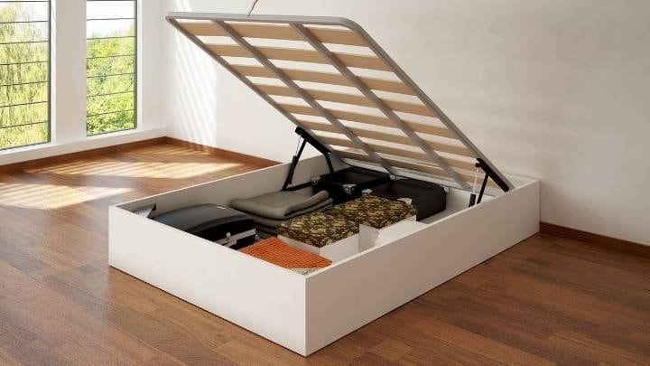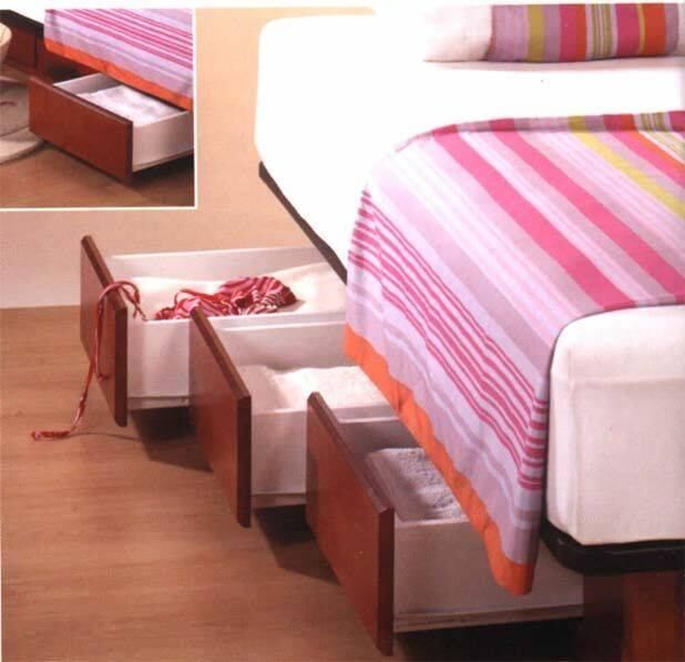 Simplemente podés hacer una cama con espacios vacíos donde podés guardar libros, los zapatos del día, elementos de uso cotidiano que estarán fuera de tu camino.
