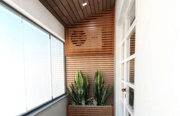 También podemos crear una pared con listones de madera, que cubra la parte donde no está el motor, para darle sentido a la parte que sí cubre el motor e integrarlo perfectamente en nuestra terraza o balcón.