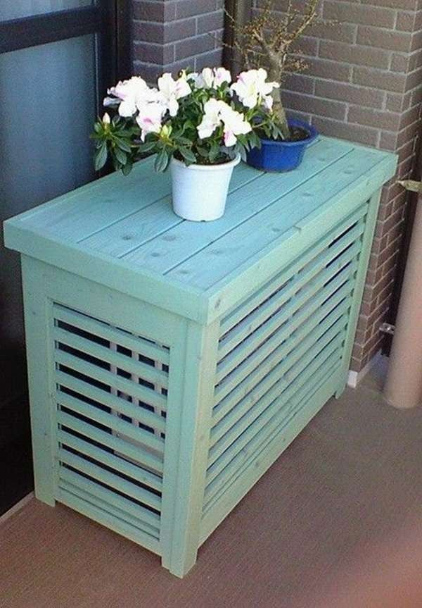 Con madera, podemos hacer una carcasa algo más grande que el motor del aire acondicionado para taparlo, permitiendo en todo momento que el aparato funcione correctamente y dejándolo accesible.