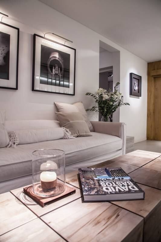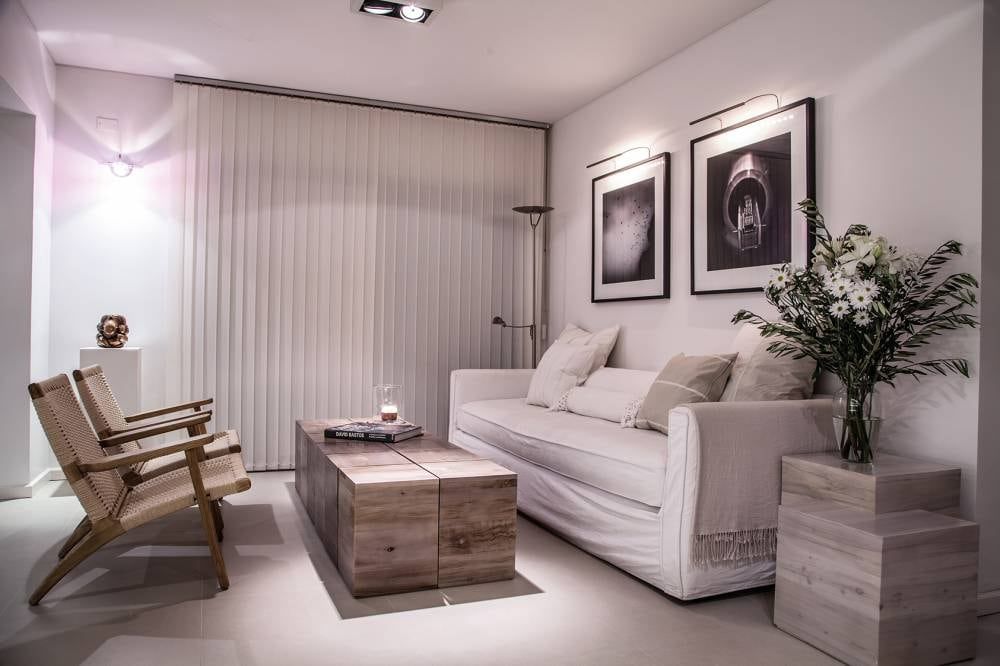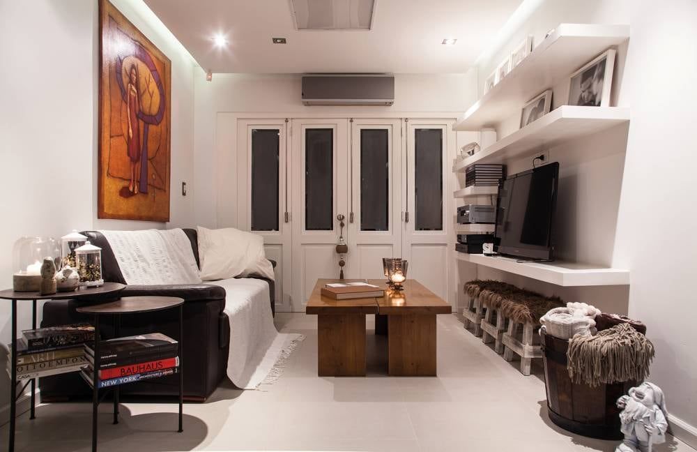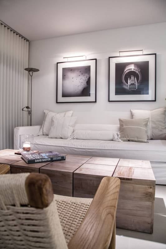 El equipamiento de diseño liviano ayuda a la versatilidad. Los muebles chicos pero seriados permiten ir modificando el ambiente en la medida que sea necesario. Sobre el sillón se ubicaron dos fotografías de gran carácter que son el centro de las miradas.