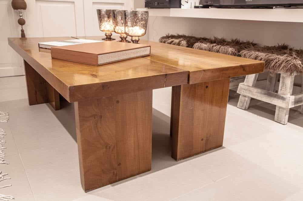 Las mesas, en detalle, pueden formar una composición de varios bloques individuales que conforman una mesa grande. Para destacar como lo más interesante es el acabado que se les dio.