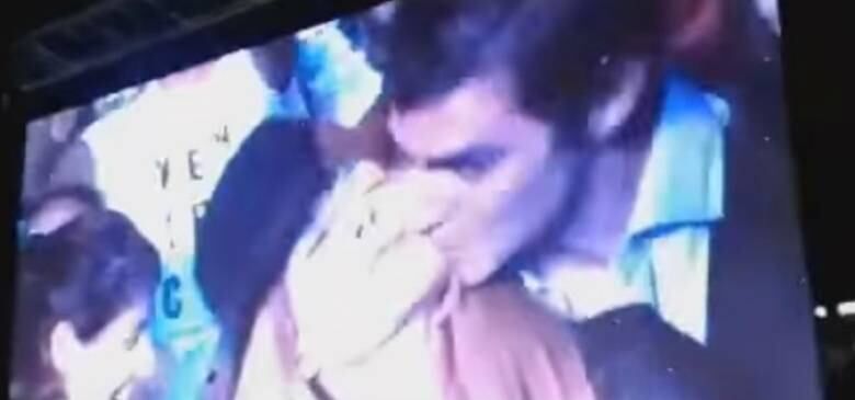 Pero la sorpresa no fue la presencia del gobernador de Salta con su novia sino que ambos aparecieron a los besos en las pantallas gigantes del escenario del show. Mientras tanto, Ricky cantaba "Tal vez".