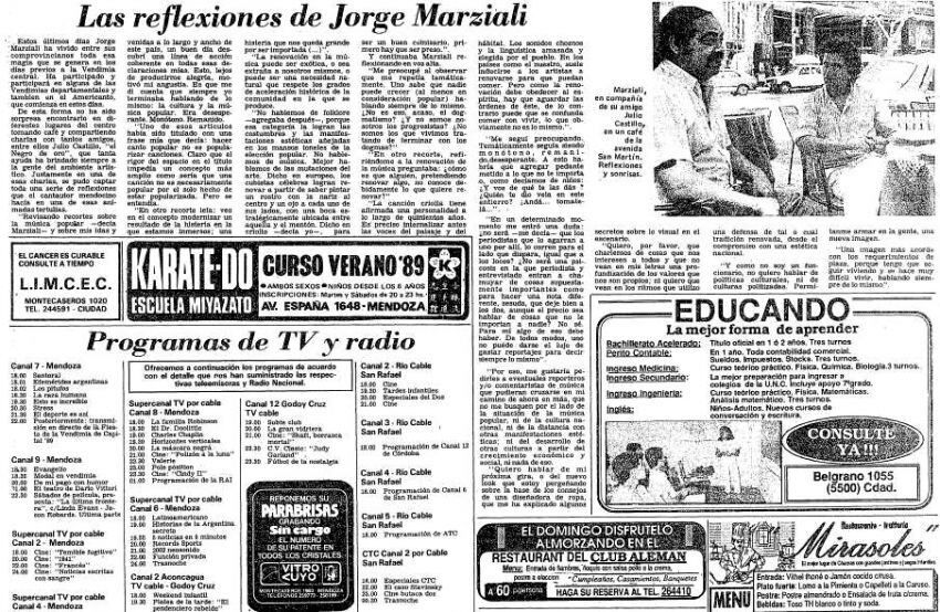 Hace casi 30 años atrás, diario Los Andes lo entrevistó cuando pasaba por un gran momento de su vida artística. En este interesante reportaje publicado el sábado 25 de febrero de 1989, Marziali reflexiona acerca de su persona y otros temas. Así nos comentaba:
