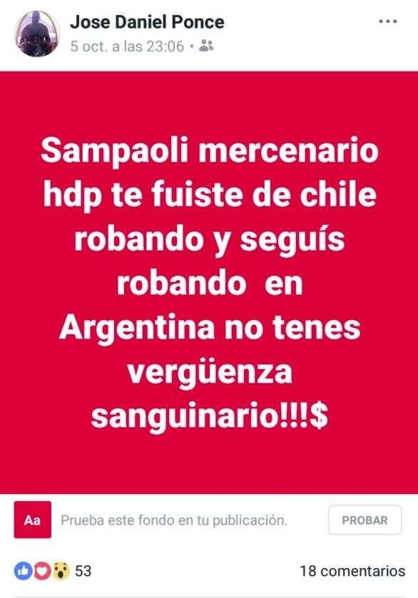El "Bocha" se indignó con el técnico de la Selección Argentina, ex entrenador de Chile, y lo señaló de "mercenario" en una publicación realizada en su cuenta oficial de facebook.
