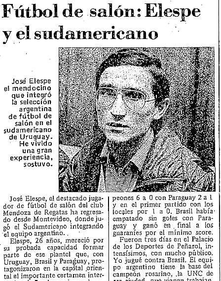 José Elespe es referente del futsal provincial ya que pertenece a la rica historia del juego. Tanto como jugador que hizo cosas importantes: cómo ser capitán de Argentina en España o ser partícipe del primer campeón en Mendoza con Regatas.
