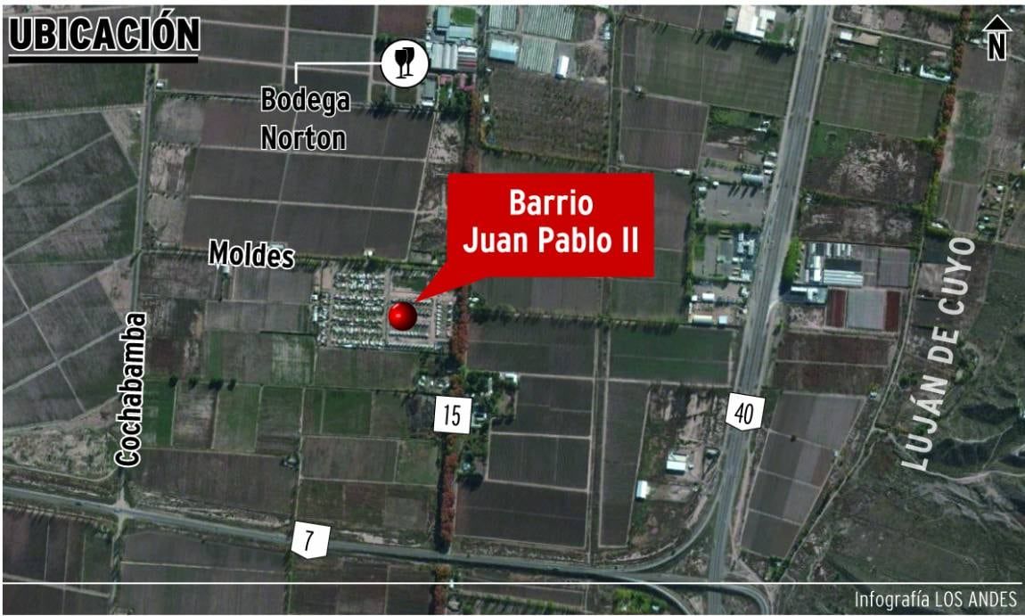 Para paliar las contingencias sufridas por la gente que quedó desamparada, el gobierno del entonces gobernador Julio Cobos construyó el barrio Juan Pablo II, en la calle Moldes de Agrelo, casi en límite con Perdriel, a 100 metros de la ruta 15 y a unos 300 metros de la bodega Norton.