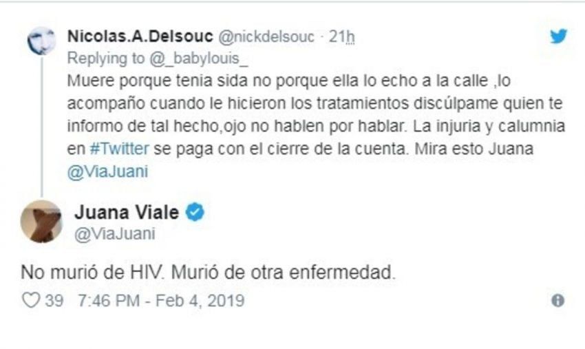La propia Viale publicó en otro tuit: "No murió de HIV. Murió de otra enfermedad".