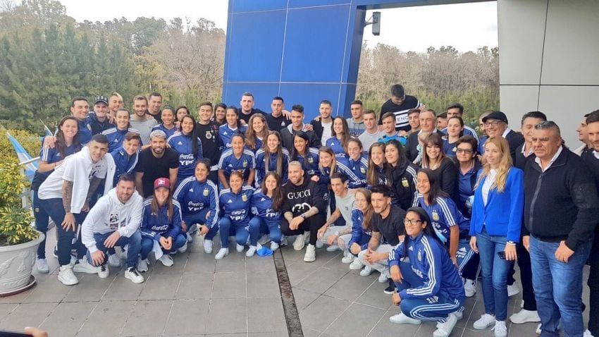 La capitana, la mendocina Estefanía Banini, pudo inmortalizar el momento con quien le diera el apodo "La Messi" cuando jugó el Sudamericano de la sub 20 de Colombia. "La enana" nunca antes había estado tan cerca de La Pulga.