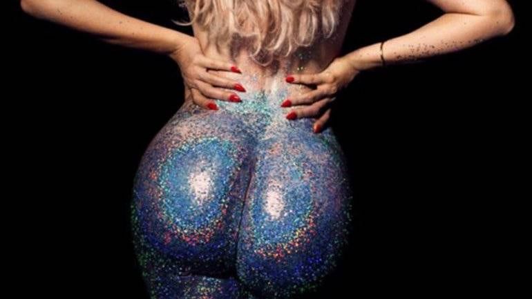 El cuerpo de la mediática sólo luce cubierto por brillantina.
