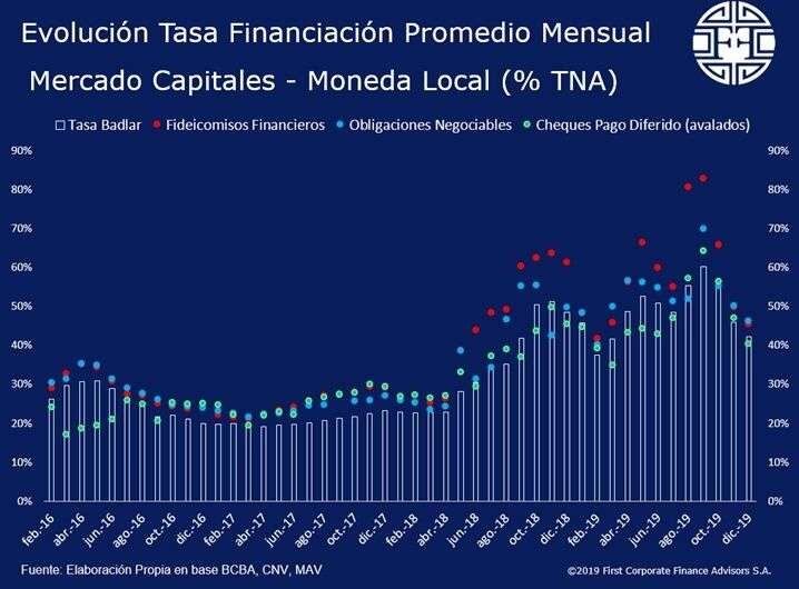 La tasa de corte informada para los bonos senior en pesos promedió 50% (TEA) en diciembre, lo que representa una disminución de 875 puntos básicos con respecto a noviembre.