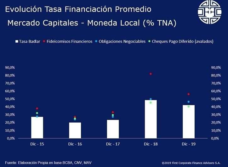 La tasa de interés nominal promedio en el mercado de capitales terminó el año con un promedio del 45%, casi 37 puntos porcentuales por debajo del nivel récord de agosto, destacó un informe de la consultora First Capital Group.