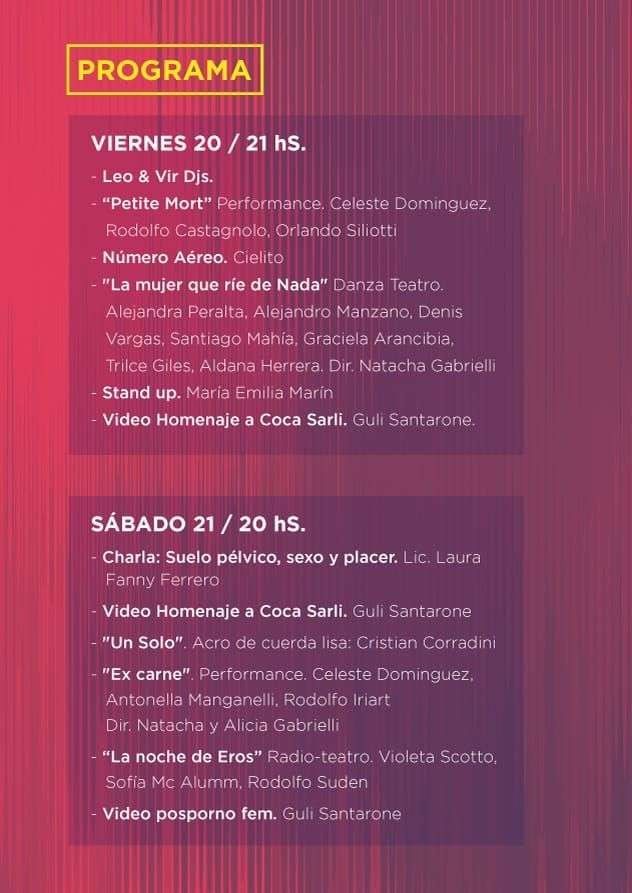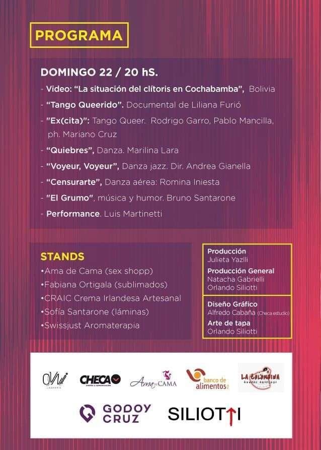 Tradicionalmente organizada por el artista plástico Orlando Siliotti, este año llega a su edición número 13, con visuales, danza, teatro, videos, música, sexshopp y gastronomía.