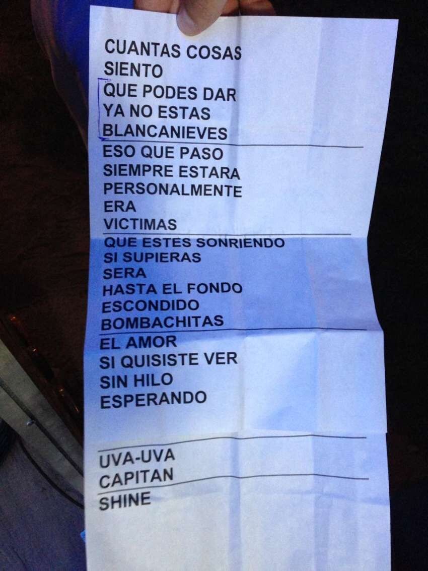 Después llegaron más clásicos como "Siento", "Que podes dar", "Ya no estás", "Blancanieves", Eso que pasó", "Siempre estará", "Personalmente", "Era", "Víctimas" que mantuvieron a la gente bien arriba.