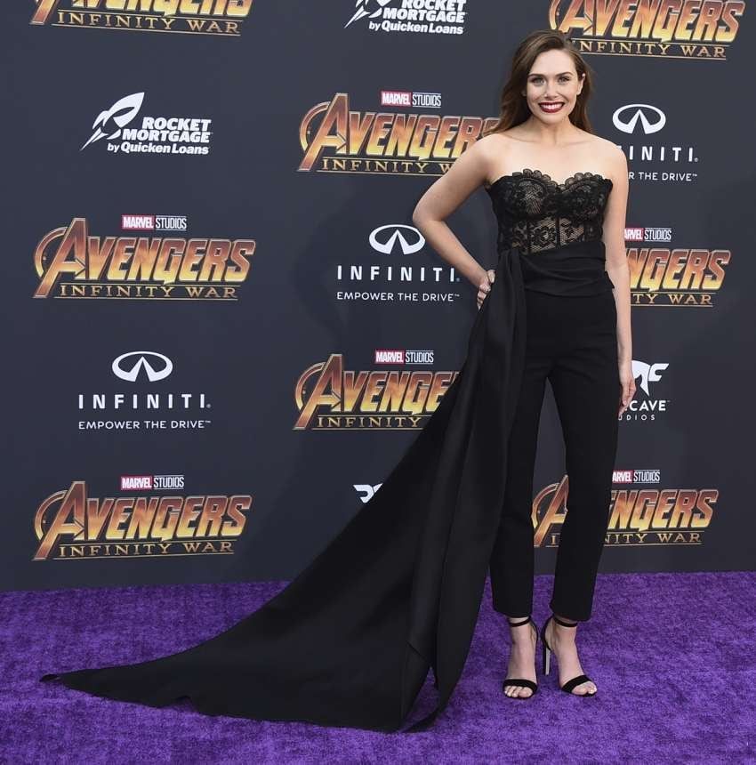 Elizabeth Olsen (Wanda Maximoff) deslumbró con un Oscar de la Renta, un mono negro de encaje y larga cola.