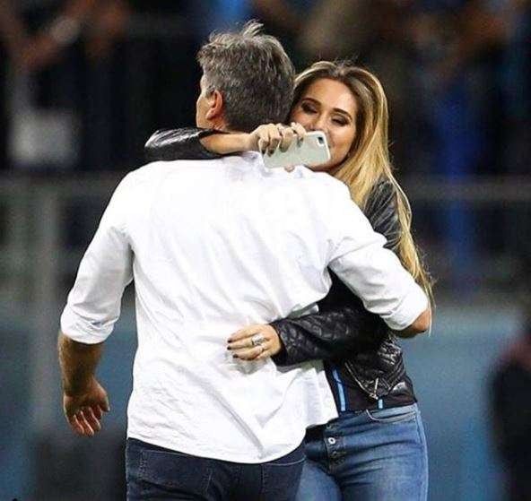 Carolina Portaluppi, hija de Renato Gaucho, técnico de Gremio, enloqueció a todos anoche tras la final que ganó el equipo de su papá. Ella, muy fanática del equipo, ni bien terminó el partido contra Independiente saltó al campo de juego para ir a abrazarlo y a partir de ahí no se despegó más.
